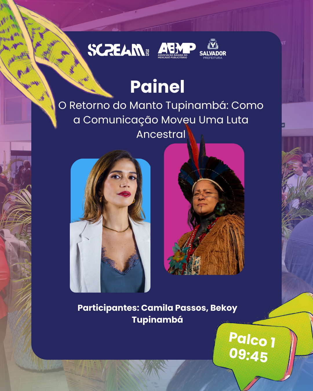 Neste painel, a estrategista indígena Jennyfer Bekoy Tupinambá e a gestora e curadora Camila Passos se encontram para decifrar como uma narrativa bem construída pode atravessar séculos, mobilizar comunidades e reposicionar a história no presente. A partir do caso emblemático da repatriação do Manto Tupinambá, Jennyfer, pioneira ao conduzir a comunicação de um processo de restituição indígena no Brasil, revela como o digital se tornou espaço de disputa simbólica e inovação política. Camila, com sua trajetória voltada à comunicação para transformação social, conduz a conversa conectando ancestralidade, estratégia e impacto. Um convite para compreender como histórias potentes, quando bem contadas, podem mover instituições, romper silenciamentos e devolver dignidade a um povo.